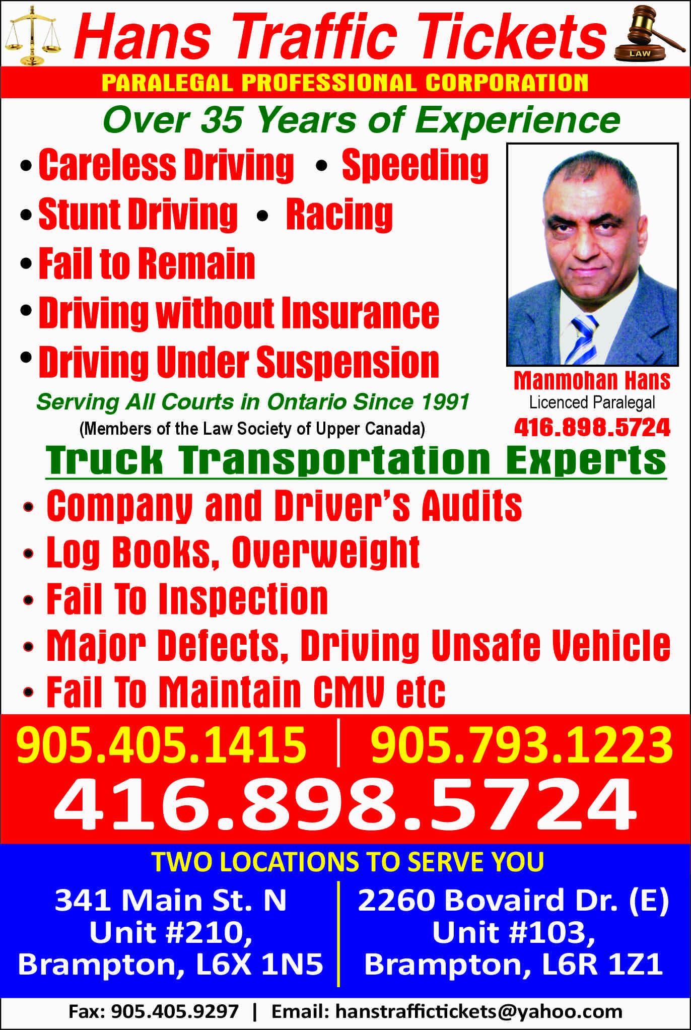 Over 35 Years of Experience Serving All Courts in Ontario Since 1991 Licenced (Members of the Law Society of Upper Canada) Truck Transportation Experts Careless Driving Speeding Stunt Driving ...