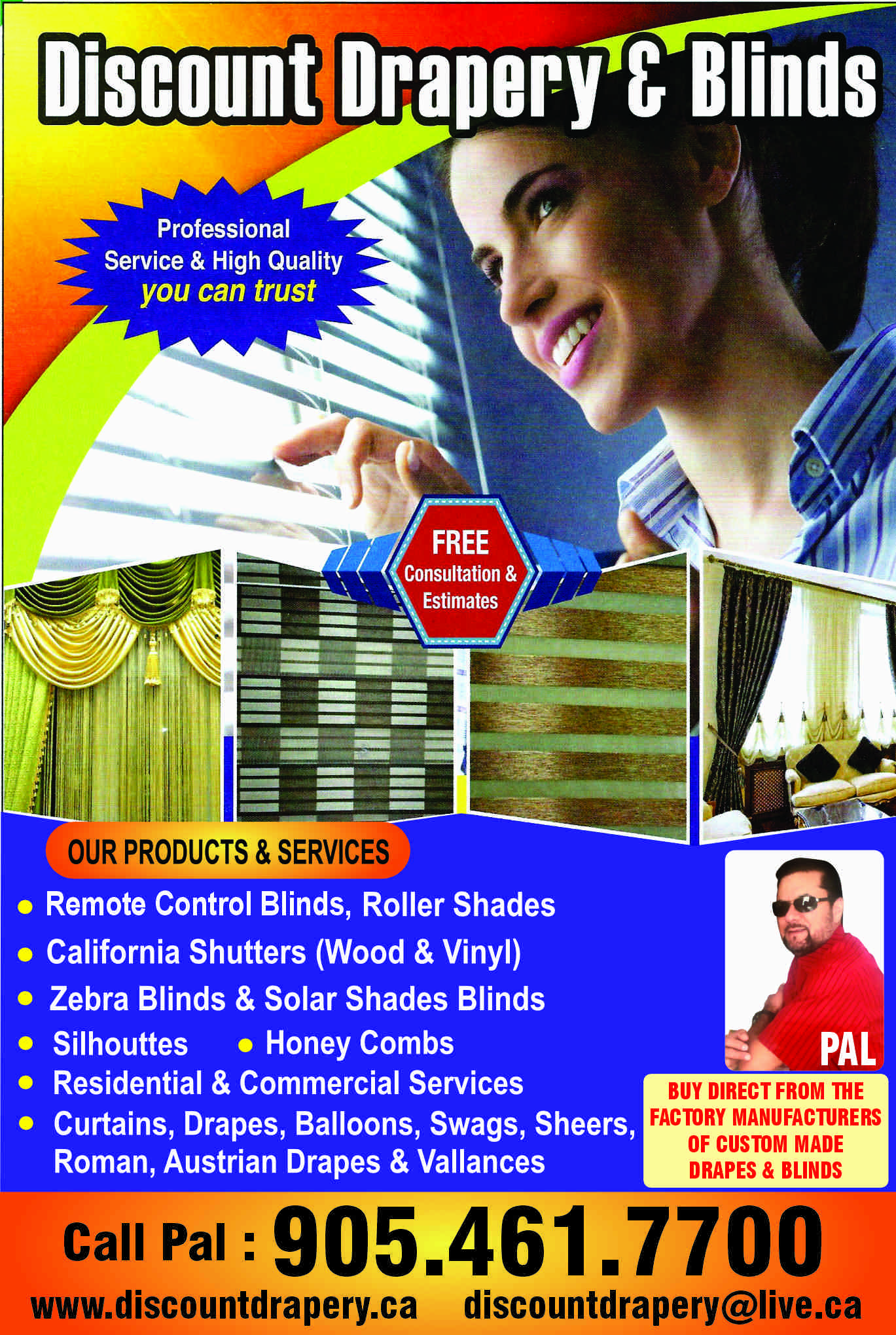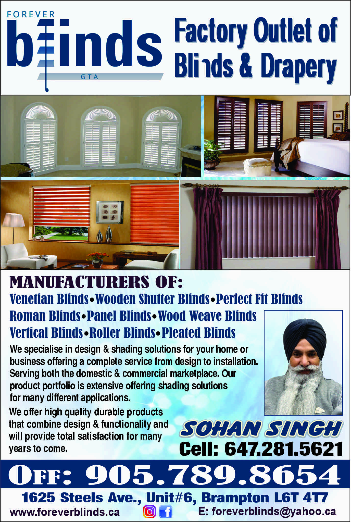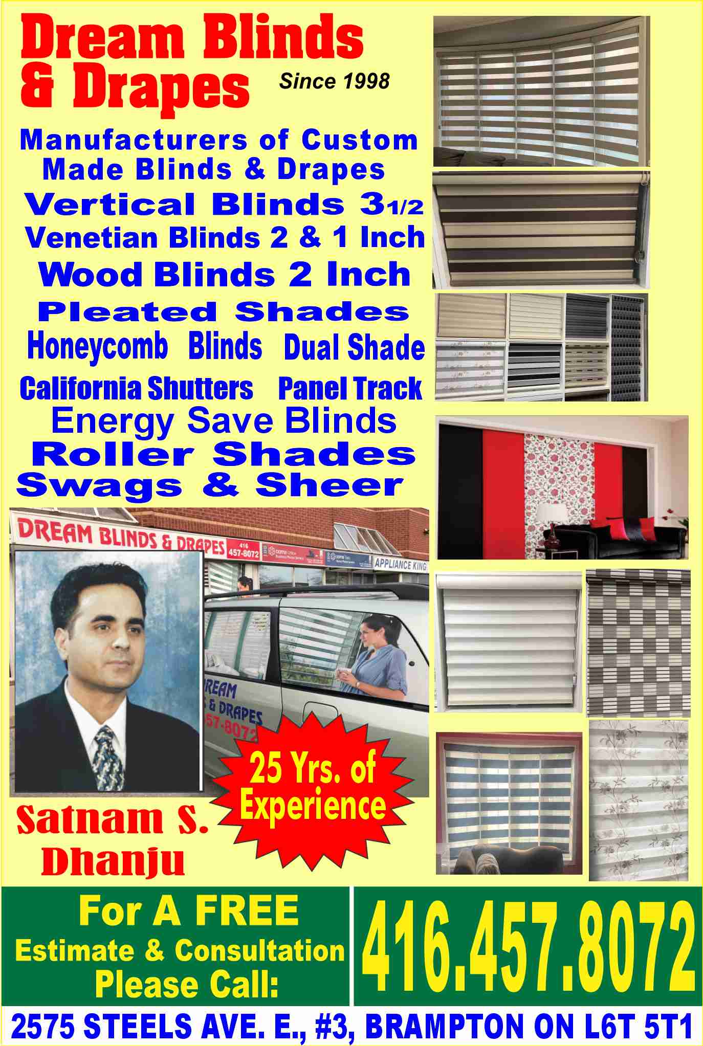 Manufactures of: Vertical blinds, roller blinds, pleated blinds, roman blinds, panel blinds, wood weave blinds, Venetian blinds, wood shutter blinds and perfect fit blinds. We specialize in design an ...
