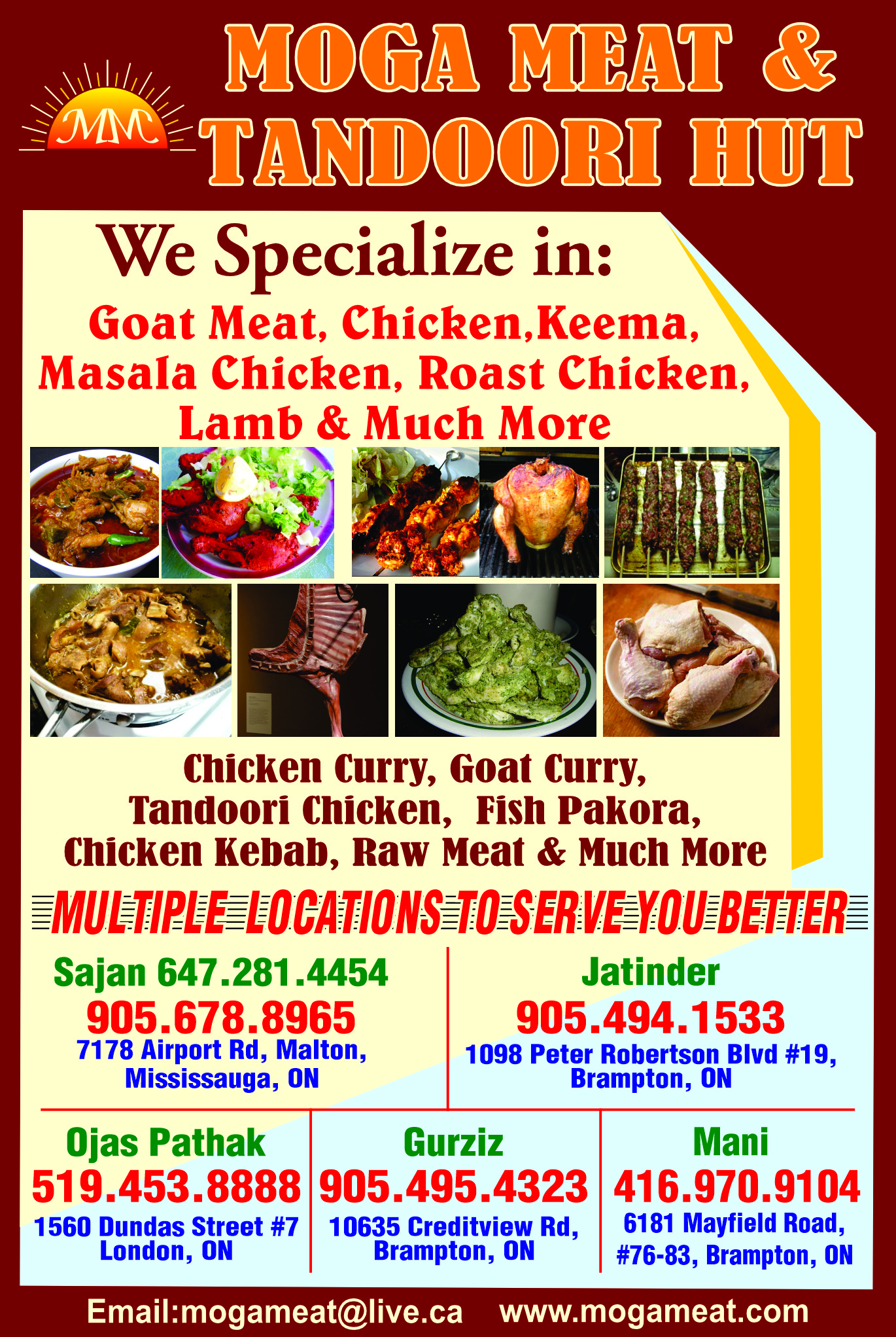Goat Meat. Chicken. Keema. Masala Chicken. Roast Chicken. Lamb. Much More. Serve At 4 Diff. Locations Location 1:- 7178, Airport Rd, Malton, Mississauga, ON, - 905-678-8965< ...