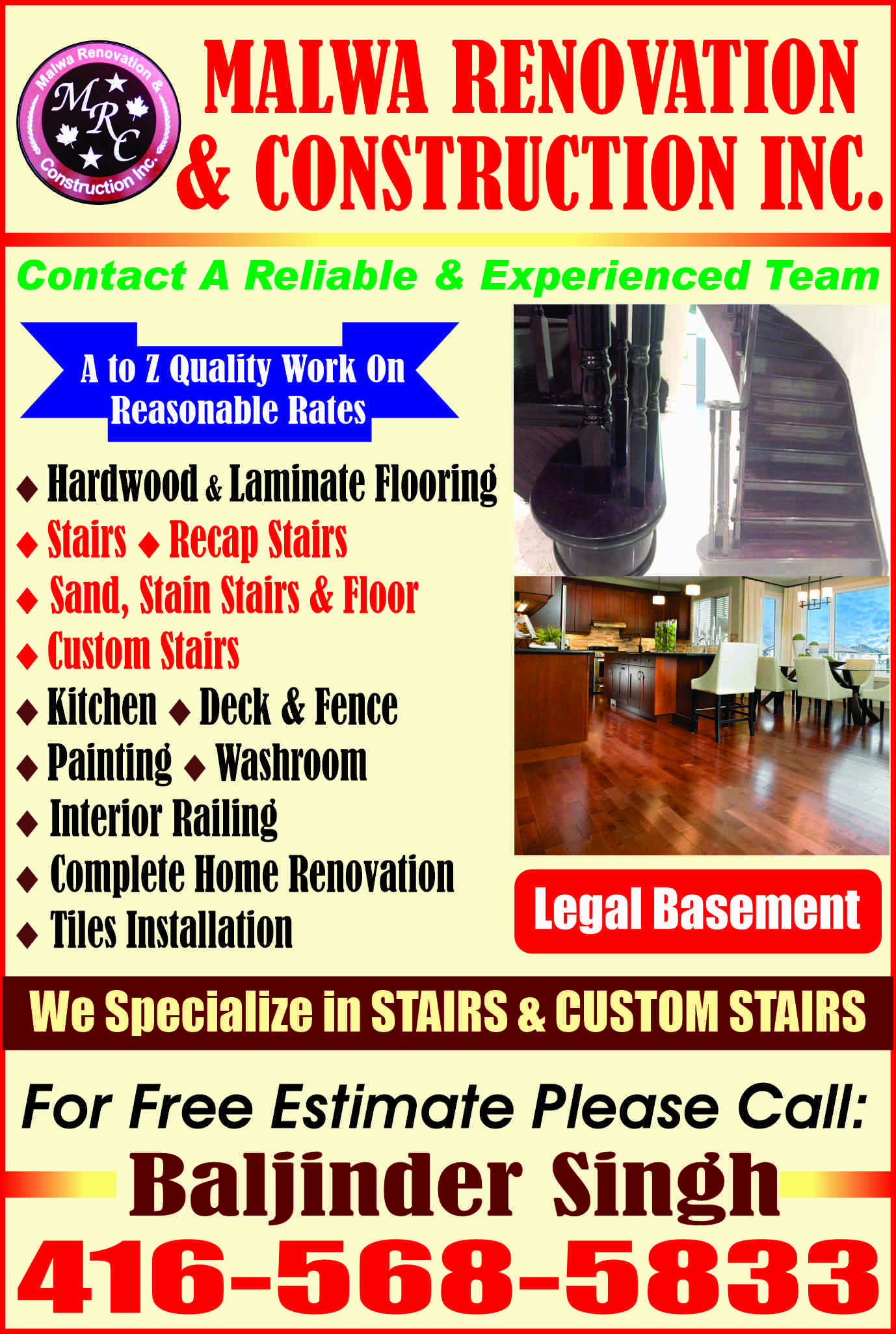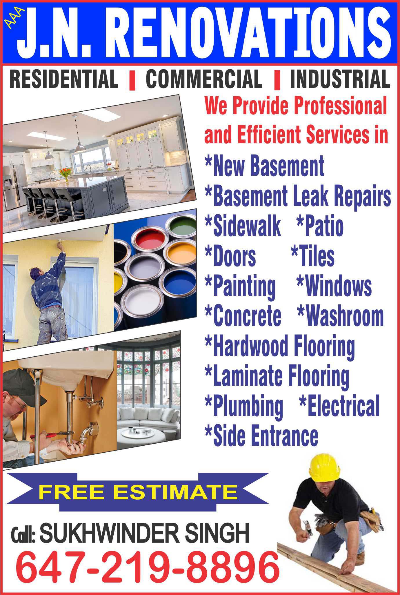 We provide professional and efficinet seervices in New Basement Basement Leak Repairs Sidewalk Patio Doors Tiles Painting Windows Concrete Washroom Hardwood Flooring Laminate Flooring L ...