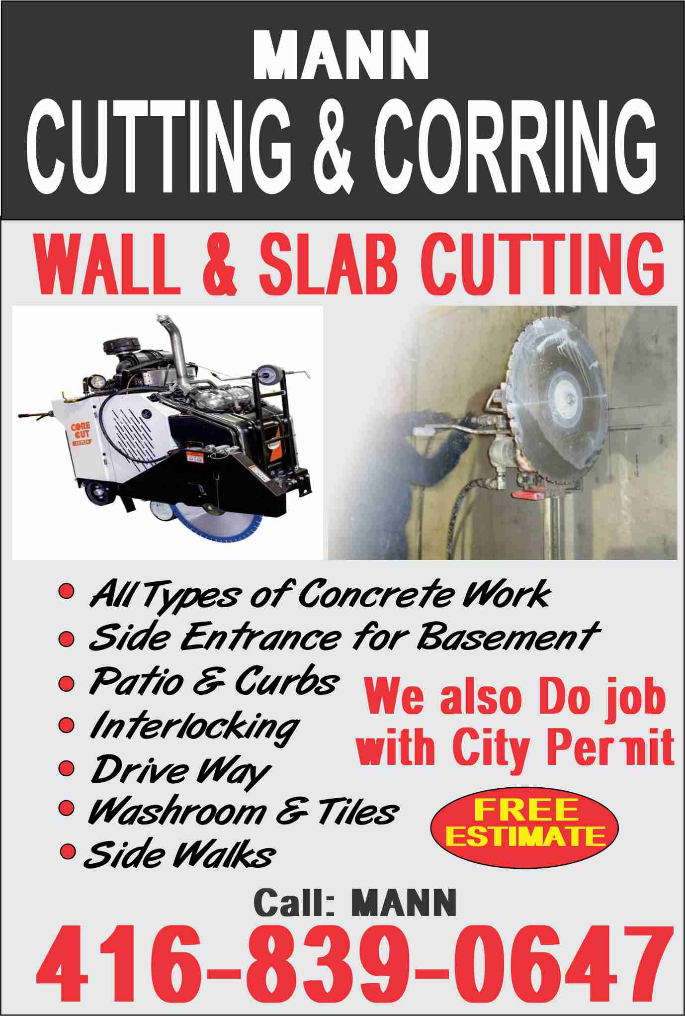 All type of concrete work Side entrance for basement Patio & curbs Interlocking Drive way Washroom & tiles Side walks