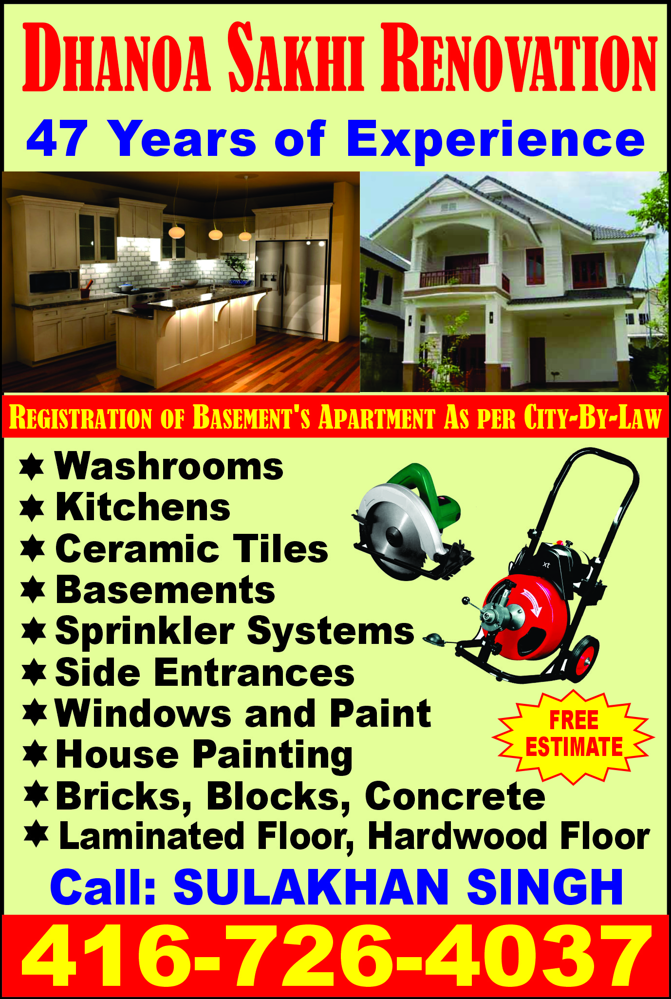 Washrooms. Kitchens. Ceramic Tiles. Basements. Sprinkler Systems. Side Entrance. Windows & Paints. House Painting. Bricks, Blocks, Concrete Laminated Floor, Hardwood Floor.